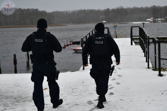 Policjanci kontrolują i ostrzegają przed wchodzeniem na zamarznięte zbiorniki wodne
