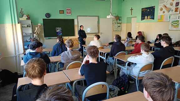 Policjantka z wizytą w „Siódemce”- promocja zawodu policjanta w ramach doradztwa zawodowego