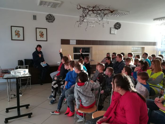 Na spotkaniu policjantka omówiła najważniejsze aspekty bezpiecznego spędzania czasu wolnego. Były więc rady policjantki dotyczące dobrania bezpiecznego miejsca do zabaw- z dala od ulicy, zamarzniętych akwenów. Zaprezentowano również jak odpowiednio zachować się podczas jazdy na sankach oraz nartach.