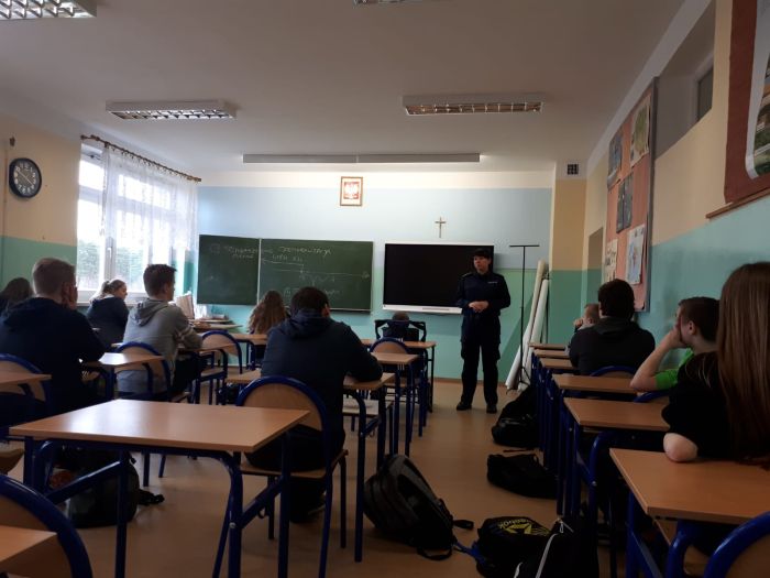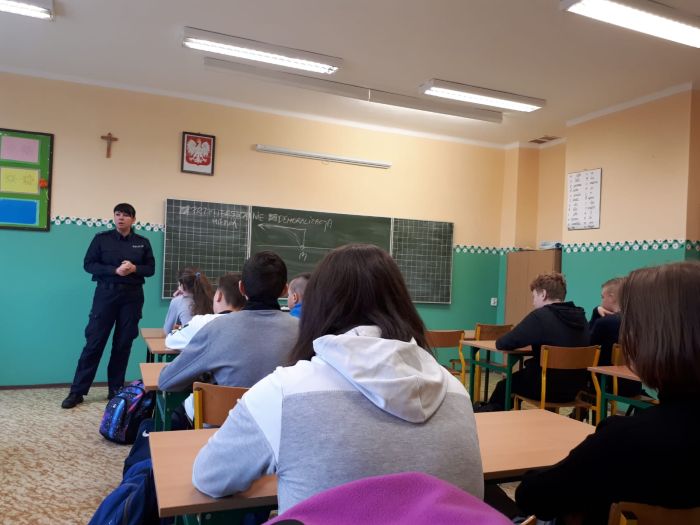 Spotkania z zakresu edukacji prawnej osób nieletnich odbyła się w klasach VIII. Słuchaczy zaznajomiono z podstawowymi pojęciami z Ustawy o postępowaniu w sprawach nieletnich, procedurami oraz prawami i obowiązkami nieletnich.