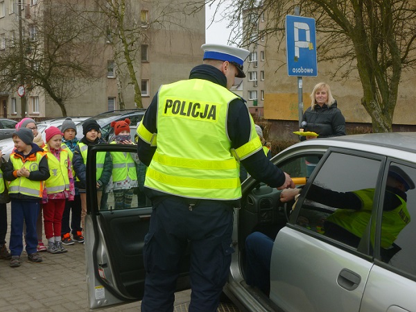 Na koniec policjanci z ruchu drogowego wyróżnili i nagrodzili uczniów, którzy podczas akcji zadawali najbardziej trafne pytania z dziedziny bezpieczeństwa w ruchu drogowym. Nagrodą okazała się możliwość zatrzymania do kontroli kolejnego pojazdu pod bacznym okiem policjanta. Podczas całej akcji kierowcy otrzymywali od policjantów profilaktyczne ulotki związane z bezpieczeństwem na drodze, a małym pasażerom wręczali odblaskowe zawieszki. Akcja cieszyła się dużym poparciem wśród kierowców, a dzieciom sprawiła mnóstwo radości.