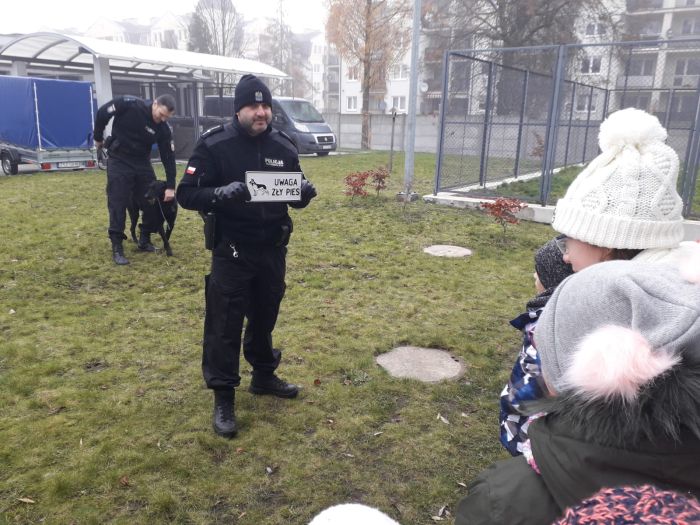 Podczas spotkania nie zabrakło cennych wskazówek i rad dotyczących zachowania w kontaktach z obcymi pieskami. Przewodnicy psów służbowych wraz ze swoimi czworonożnymi partnerami prześcigali się by pokazać gościom, który pies jest bardziej posłuszny i ułożony.