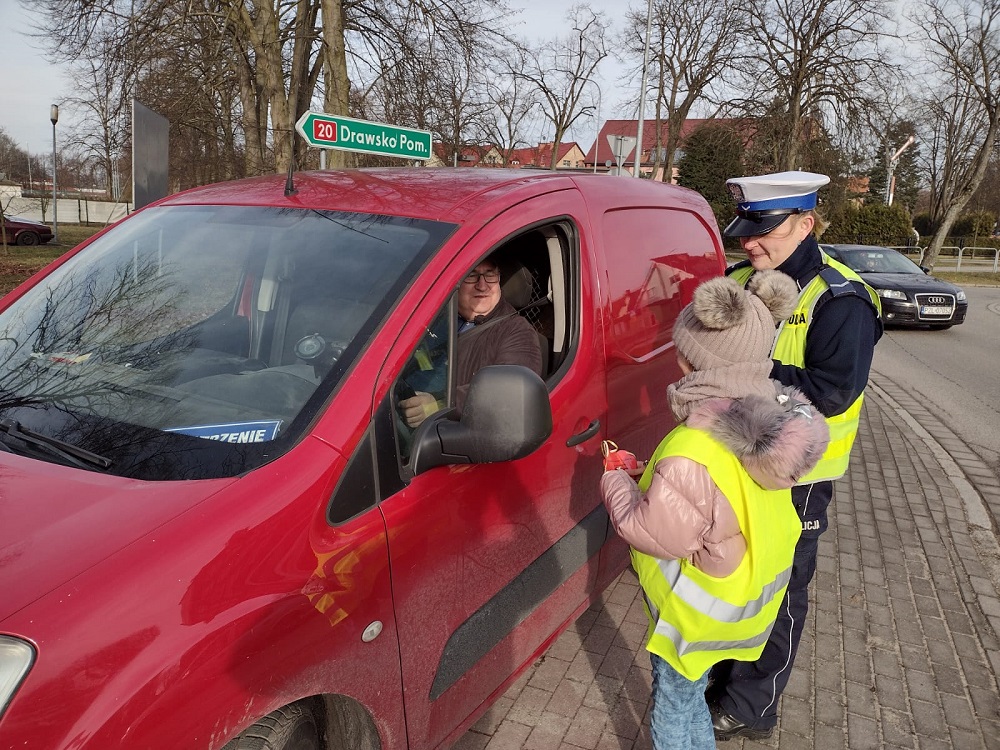 Z miłości do bezpieczeństwa – pod takim hasłem policjanci szczecineckiej drogówki wspólnie z uczniami Szkoły Podstawowej nr 1 w Szczecinku promowali bezpieczne zachowania na drogach. Czerwone serca w formie zawieszki, które przygotowali uczniowie w prezencie dla szczecineckich kierowców od dziś będą im przypominać o ostrożności, tolerancji i kulturalnym zachowaniu na drogach.