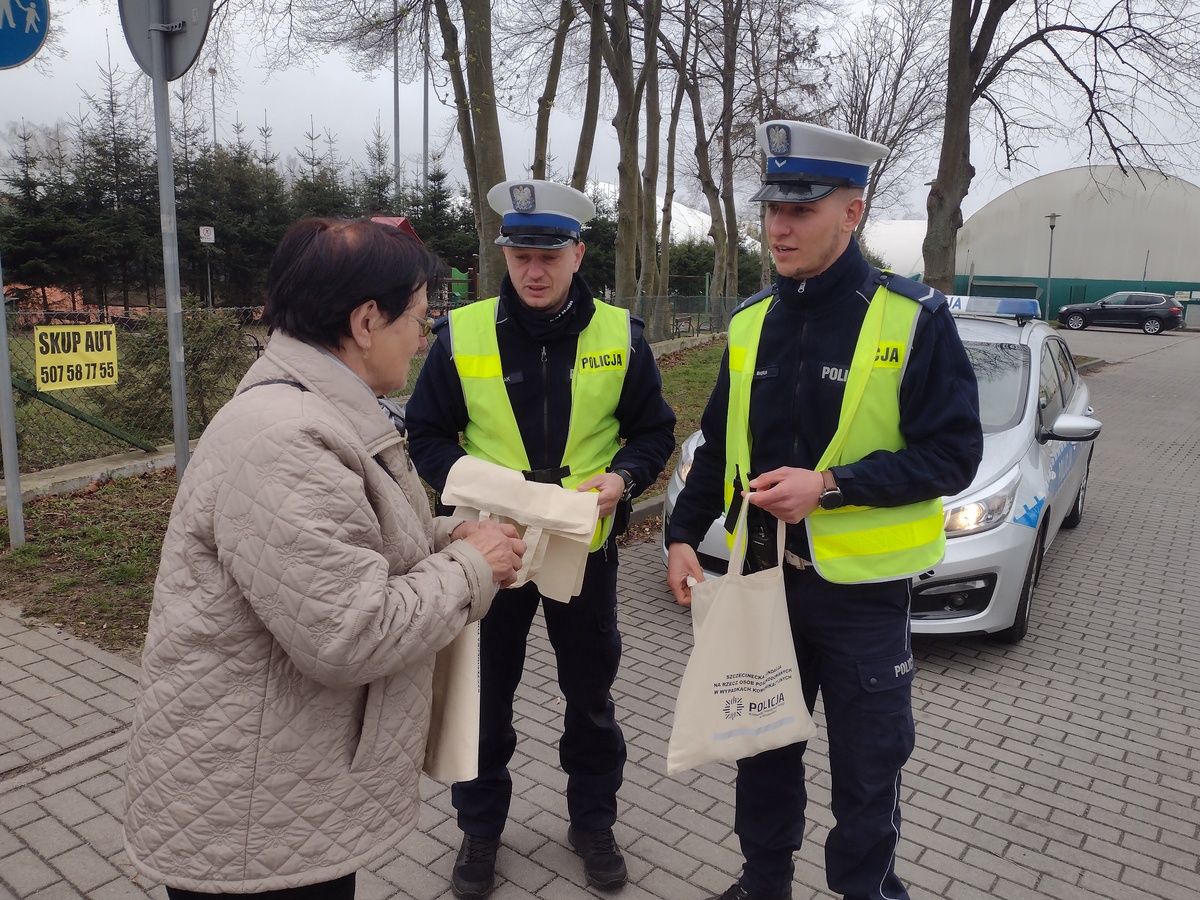 W trosce o bezpieczeństwo mieszkańców, policjanci szczecineckiej drogówki przeprowadzili działania ukierunkowane na niechronionego uczestnika ruchu drogowego. Oprócz cennych rad, policjanci składali dziś wielkanocne życzenia a z „koszyczka” wyciągali małe drobiazgi przypominające o codziennym bezpieczeństwie.