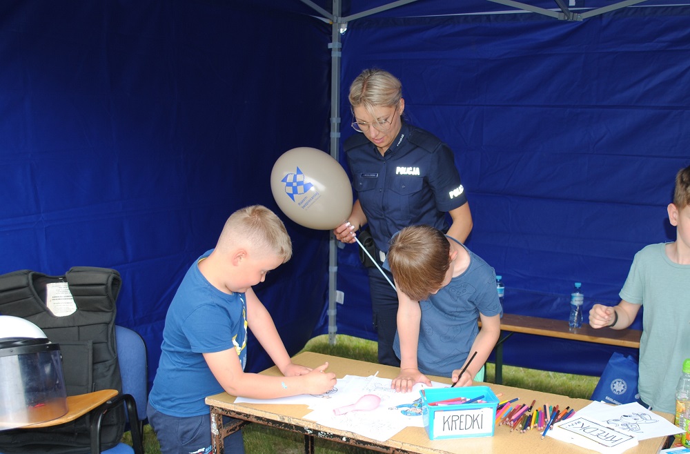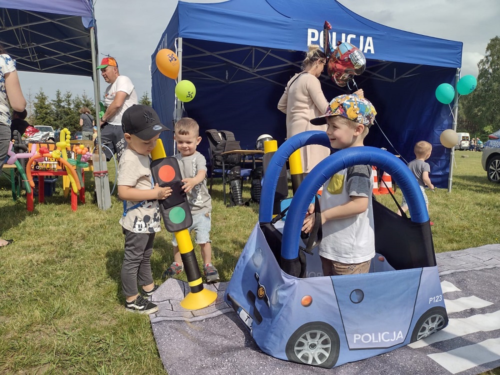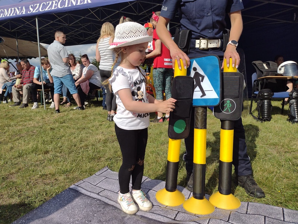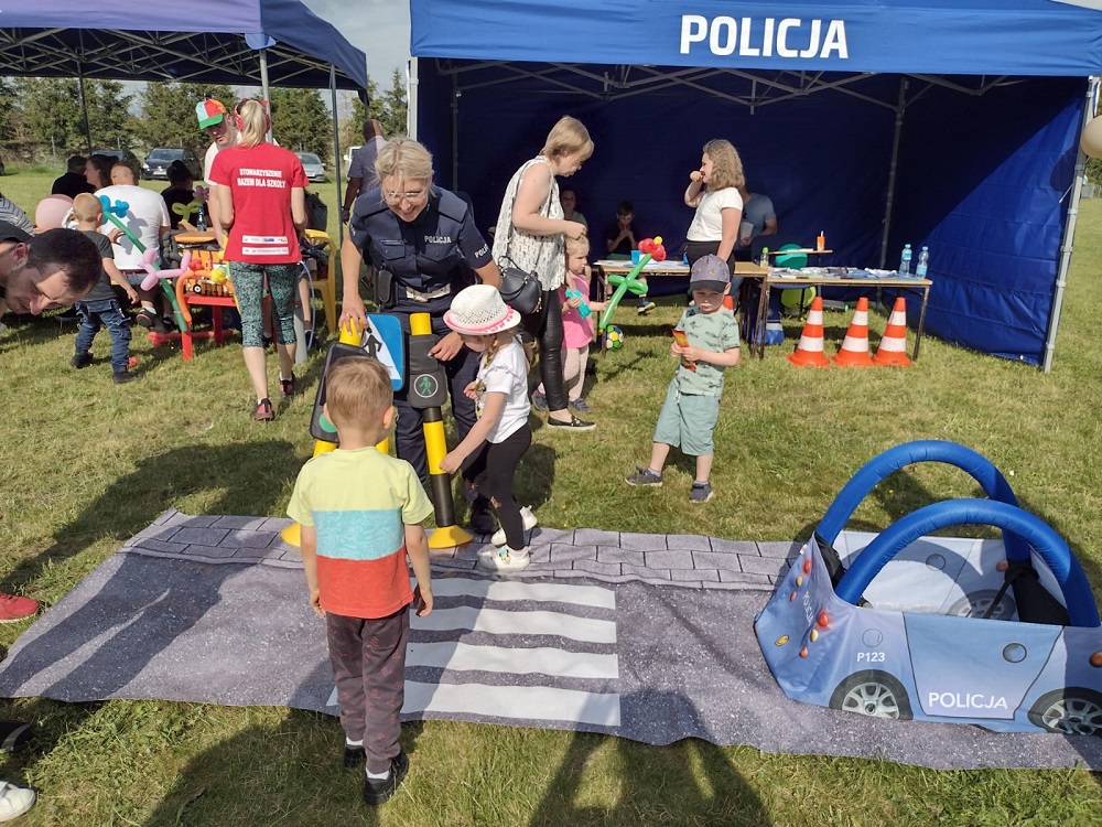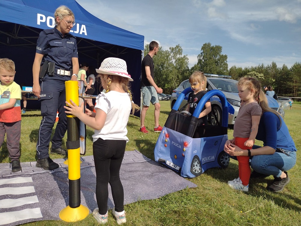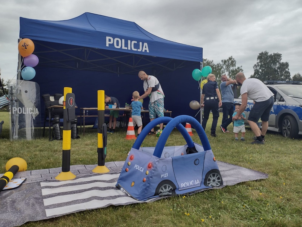Policjanci z Komendy Powiatowej Policji w Szczecinku przygotowali z tej to oto okazji stoisko profilaktyczne, na którym oprócz policyjnego sprzętu promowali również zawód policjanta. Mundurowym z wykorzystaniem elementów edukacyjnego miasteczka ruchu drogowego „Autochodzik” nie stronili od wspólnej zabawy z najmłodszymi. Nie zabrakło też atrakcji dla nieco starszych uczestników pikniku – tor zręcznościowy z użyciem alkogogli oraz sprzęt podwyższonego ryzyka. Jak zwykle ogromnym zainteresowaniem cieszył się policyjny radiowóz i możliwość uruchomienia sygnałów dźwiękowych oraz błyskowych. Dla najmłodszych, którzy potrzebiwali chwili wytchnienia od beztroskiej zabawy i słońca w policyjnym namiocie czekały wyciszające kolorowanki.