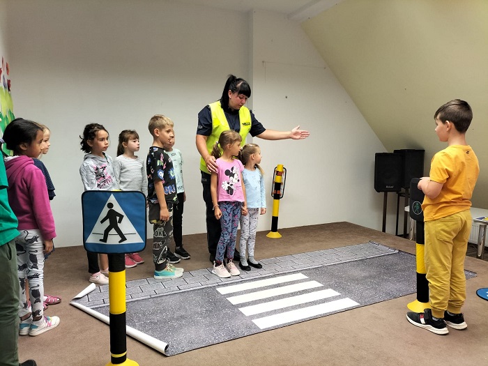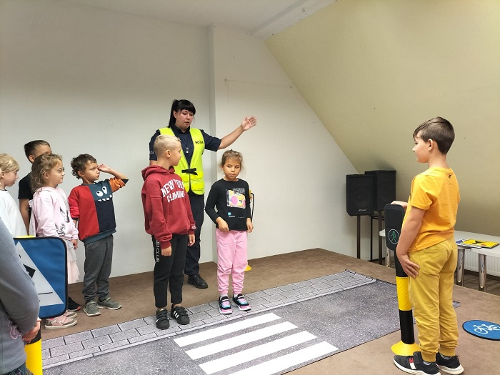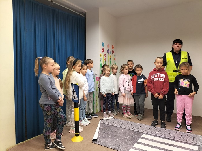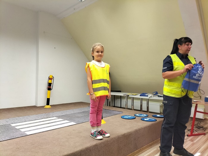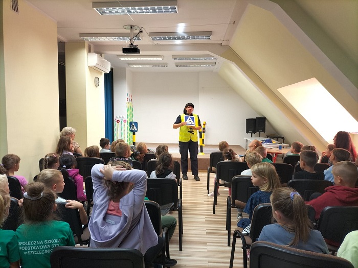 Podczas ostatniego spotkania z dziećmi z Zespołu Szkół Społecznych STO w Szczecinku policjantka omówiła zasady bezpiecznego poruszania się po drodze. Funkcjonariuszka przypomniała m. in. o zasadach bezpiecznego przechodzenia przez jezdnię oraz chodzenia właściwą stroną drogi. Zwróciła również uwagę na konieczność korzystania z fotelików oraz z pasów bezpieczeństwa podczas jazdy samochodem. Ważnym elementem spotkania było zachęcenie małych słuchaczy do sięgnięcia po elementy odblaskowe schowane w szufladach biurek i noszenie ich w widocznym miejscu po zmroku. Nie zabrakło również cennych wskazówek jak powinno się bezpiecznie podróżować samochodem jako pasażer.