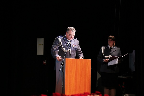 Po złożeniu meldunku przez dowódcę uroczystości Naczelnika Wydziału Prewencji i Ruchu Drogowego kom. Tomasza Bykowskiego głos zabrał Komendant Powiatowy Policji w Szczecinku podinsp. Andrzej Dziemianko, który przywitał wszystkich zebranych oraz podziękował policjantom za trud, zaangażowanie i oddaną służbę. Szef szczecineckich policjantów przekazał funkcjonariuszom serdeczne życzenia wszelkiej pomyślności na polu zawodowym oraz w życiu prywatnym.