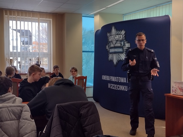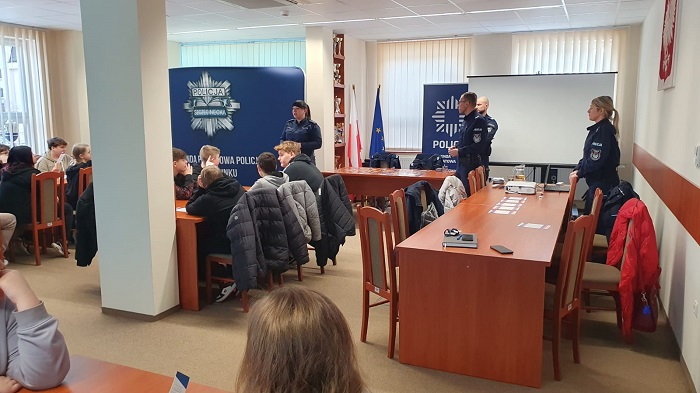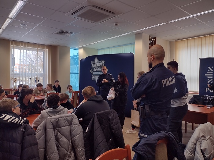 W ramach obchodów Dnia Bezpiecznego Internetu w Komendzie Powiatowej Policji w Szczecinku zostało zorganizowane spotkanie dla uczniów Szkoły Podstawowej nr 5 w Szczecinku z udziałem policjantów z Wydziału Prewencji Komendy Wojewódzkiej Policji w Szczecinie.