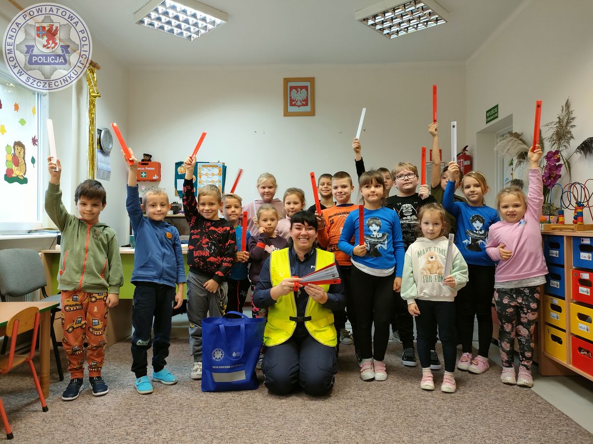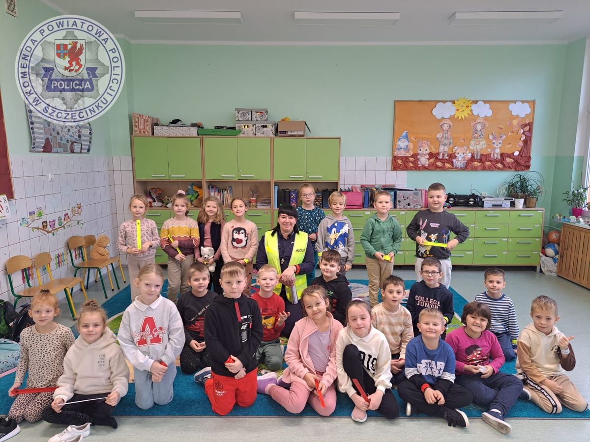 Od początku października do końca roku prowadzone są działania pn.: „Świeć przykładem – noś odblaski”. Celem ogólnopolskiej akcji jest zachęcanie niechronionych uczestników ruchu drogowego do korzystania z elementów odblaskowych. Tym razem policjantka z Komeny Powiatowej Policji w Szczecinku tłumaczyła najmłodszym, jak ważne jest noszenie odblasków odblaskowych. Szczególnie istotne są one właśnie w okresie jesienno-zimowym, gdy szybciej zapada zmrok. Zorganizowana prelekcja była również okazją do przypomnienia podstawowych zasad bezpiecznego poruszania się po drogach. Na koniec policjantka wręczyła uczniom samozaciskające się opaki odblaskowe.