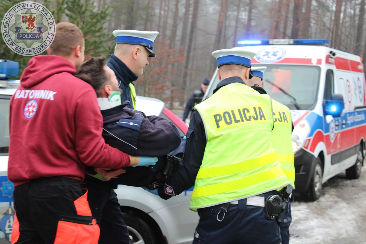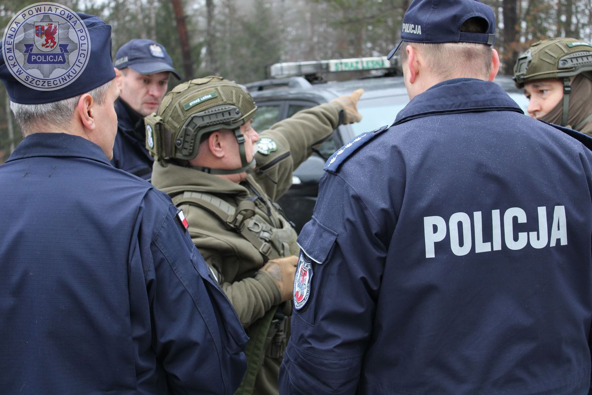 Zgodnie ze scenariuszem ćwiczeń, podczas konwoju osoby zatrzymanej do zakładu karnego dochodzi do wypadku drogowego. Kierujący radiowozem policjant chcąc uniknąć zderzenia ze zwierzyną leśną traci panowanie nad pojazdem i uderza w drzewo. Funkcjonariusze tracą przytomność. Osoba doprowadzana do zak ladu karnego zabiera broń służbową policjantowi i ucieka w las. O zdarzeniu drogowym dyżurnego Komendy Powiatowej Policji w Szczecinku informują przejeżdzający tą trasą inni kierujący. Do obsługi zdarzenia zostają zadysponowani policjanci z ogniwa ruchu drogowego i załoga pogotowia ratunkowego. Uzyskane na miejcu zdarzenia informacje powodują pojawianie się na miejscu kolejnych patroli policji a do wspólnych działań włączają się funkcjonariusze straży leśnej. Od tego momentu wszystkim funkcjonariuszom przyświeca wspólny cel – jak najszybsze zatrzymanie uciekiniera. W efekcie podjętych działań poszukiwawczych mężczyzna został zatrzymany.