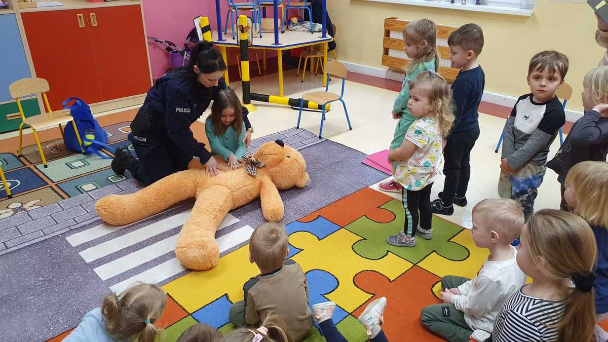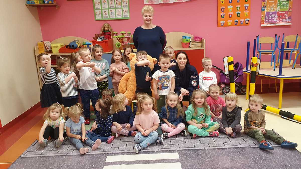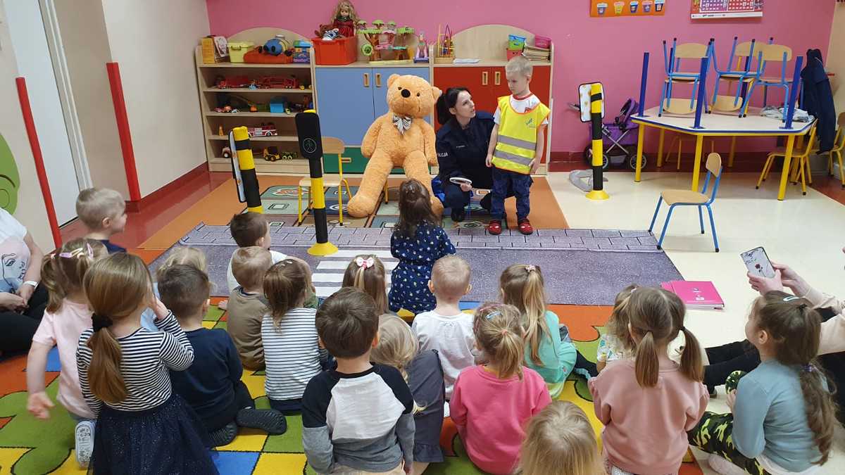 Policjantka podczas wizyty omawiała podstawowe zasady podczas zabawy na placu zabaw, w przedszkolu, a także o unikaniu kontaktu z osobami nieznajomymi. Najmłodsi nauczyli się jak bezpiecznie przejść przez przejście dla pieszych , gdy znajduję się na nim sygnalizacja świetlna, a także kiedy tej sygnalizacji nie ma. Podczas pogadanki funkcjonariuszka wspomniała jak ważne jest noszenie kasku ochronnego, elementów odblaskowych oraz ochraniaczy na łokcie oraz kolana podczas korzystania z roweru oraz hulajnogi. Przedszkolaki nauczyły się także jak udzielić pierwszej pomocy oraz pod jaki numer alarmowy dzwonić, aby wezwać pomoc.