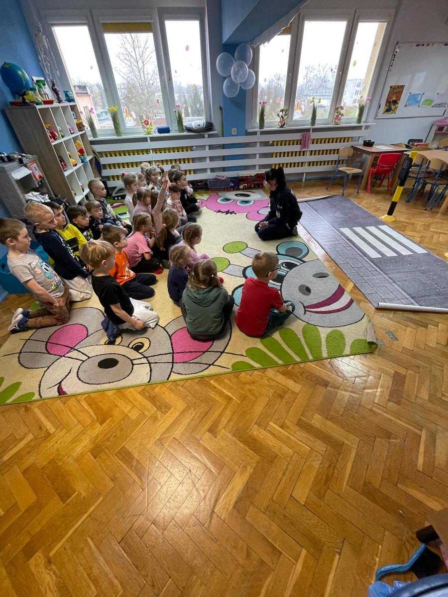 Dzieci podczas spotkania poznały podstawowe zasady pieszego uczestnika ruchu drogowego oraz stosowanie się do znaków i sygnałów drogowych, a także bezpiecznego zachowania się w domu, w przedszkolu i na placach zabaw. Dzieci utrwaliły także zasady przechodzenia przez jezdnię – na przejściu dla pieszych, należy się rozejrzeć lub poczekać na zielone światło w przypadku sygnalizacji świetlnej. Przedszkolaki dowiedziały się jak zachowywać się w kontakcie z obcymi osobami, zwierzętami i nieznanymi roślinami oraz sytuacji zagrożenia i zwracania się o pomoc – poznanie telefonów alarmowych.