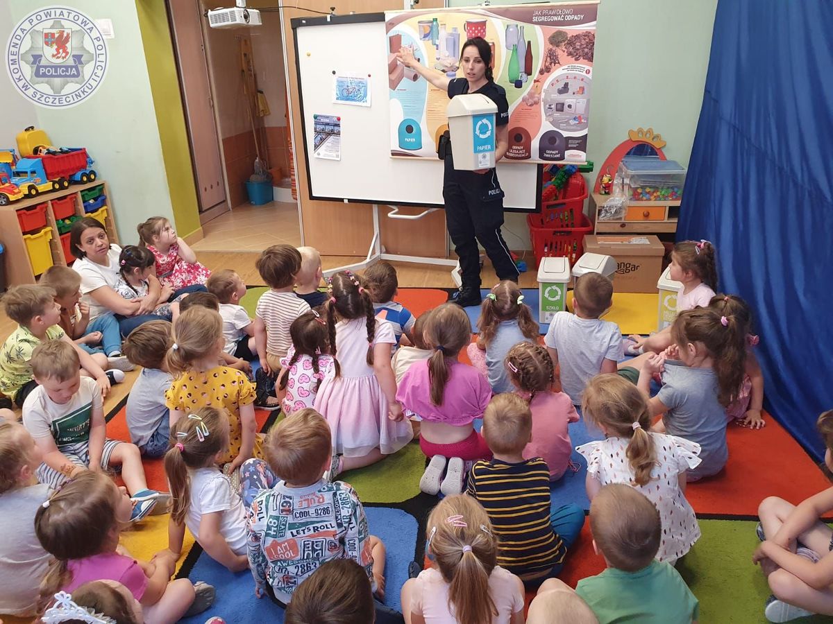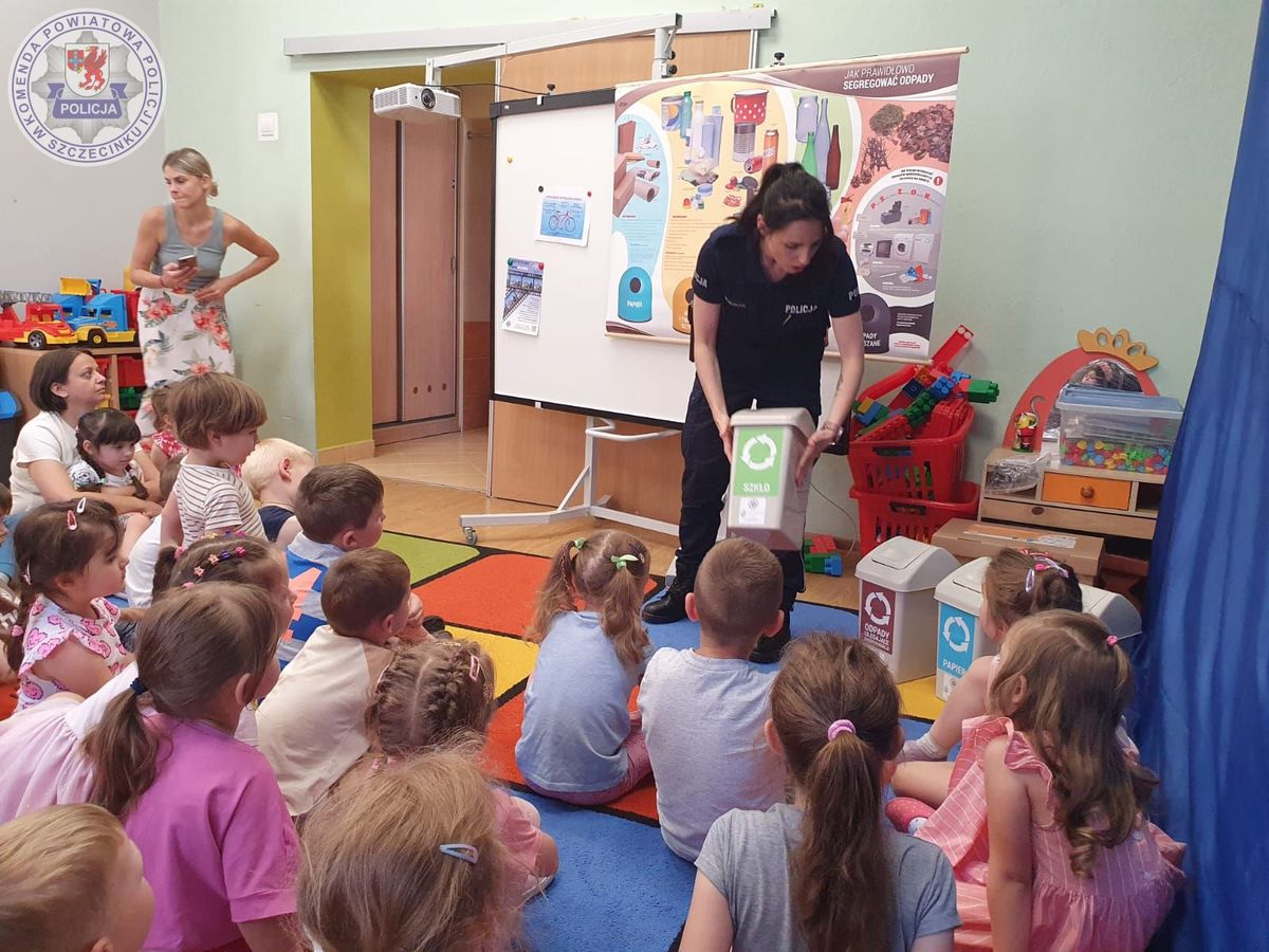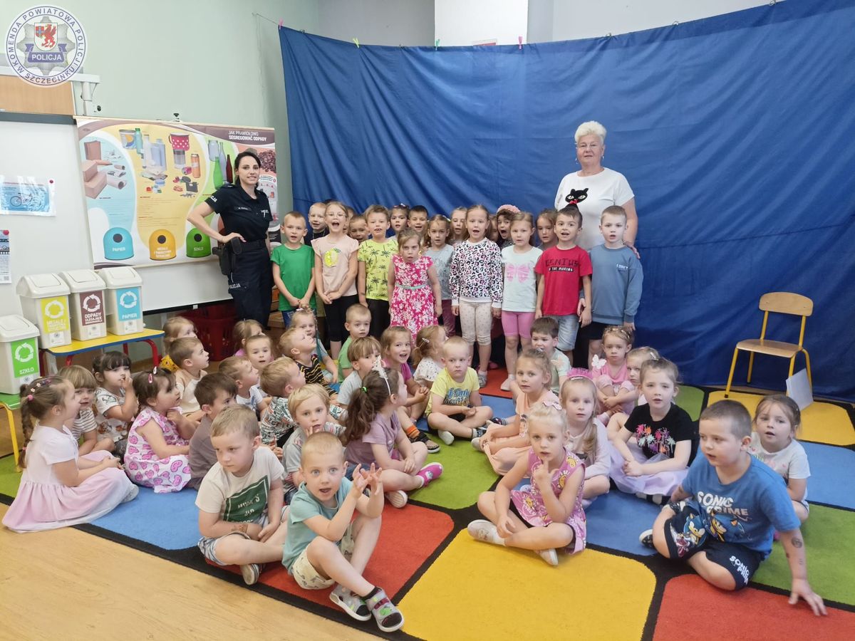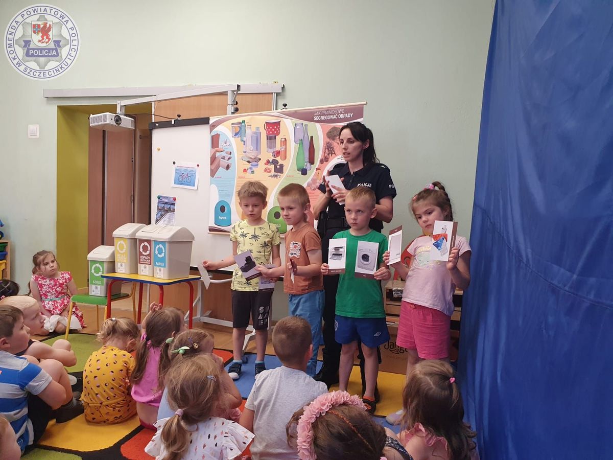 Tym razem o bepieczeństwie dla naszego środowiska i z innej perspektywy o bezpiecznych wakacjach rozmawiała z najmłodszymi policjantka z Komendy Powiatowej Policji w Szczecinku. Podczas spotkania mundurowa przypominała o pozostawianiu miejsc letniego wypoczynku w takim stanie jak je zastaliśmy. O zabieraniu ze sobą śmieci i nie pozostawianiu ich w lesie czy nad wodą. Wspólnie przez zabawę dzieci pod czujnym okiem policjantki przypominały sobie zasady segregacji śmieci.