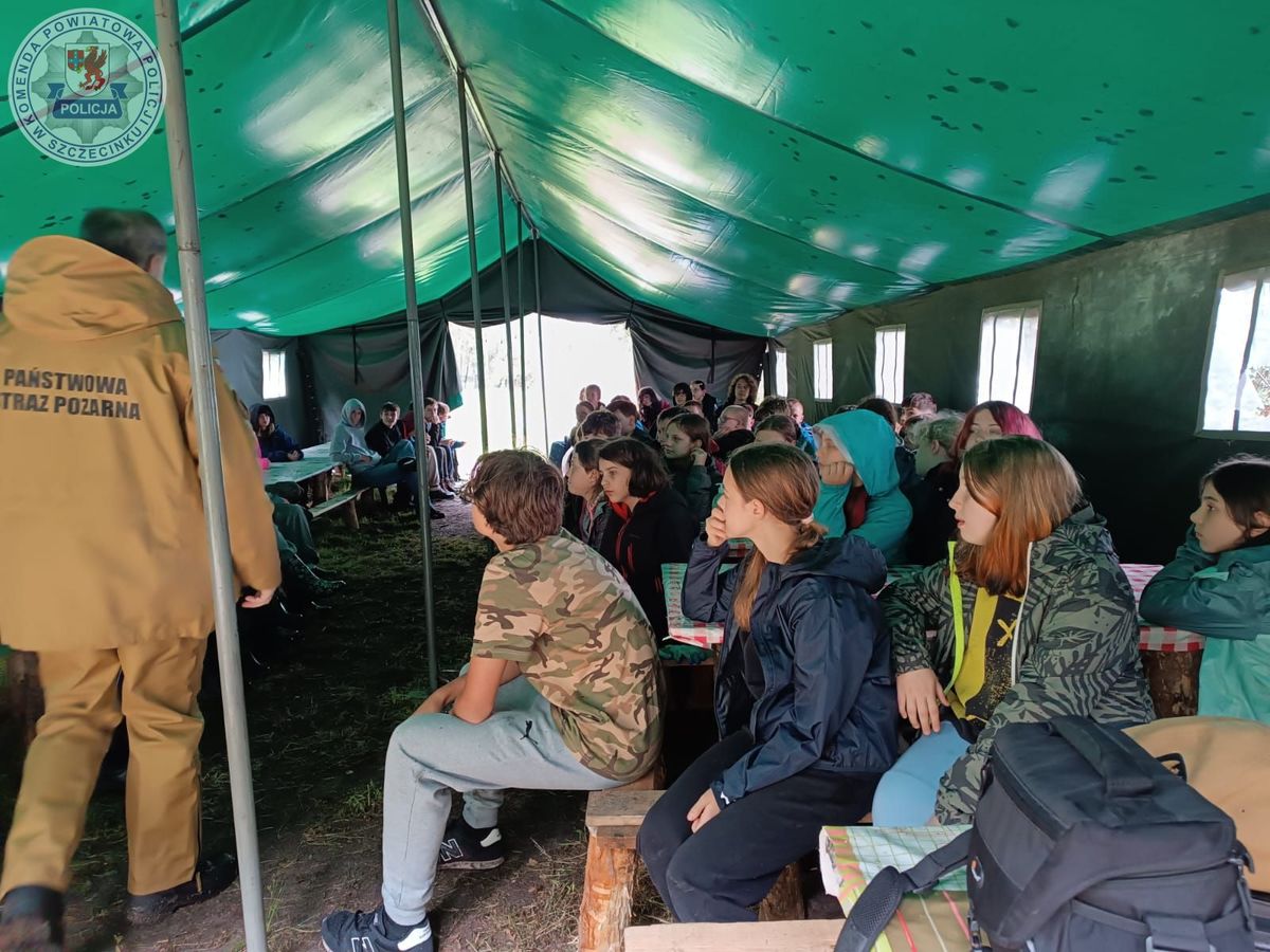 Wraz z nadejściem nowego tygodnia aura za oknami mocno się zmieniła. Nie zniechęciło to jednak harcerzy i harcerek z Krakowa do zameldowania się się na swoim obozie, na terenie gminy Szczecinek. Dziś policjantki wspólnie ze strażakami z Komendy Powiatowej Państwowej Straży Pożarnej w Szczecinku i pracownikiem Gminy Szczecinek odwiedziły obóz harcerski Swarożyca.