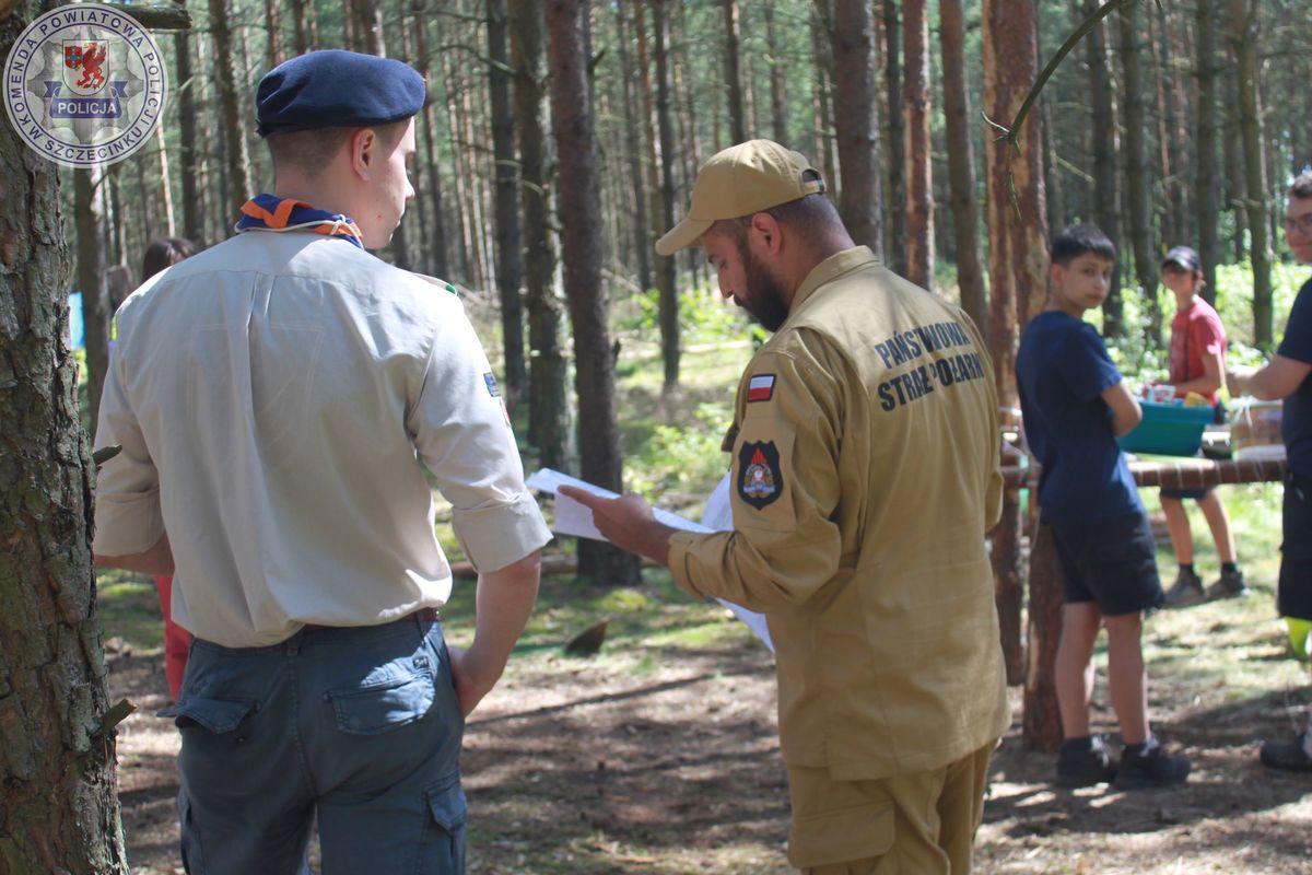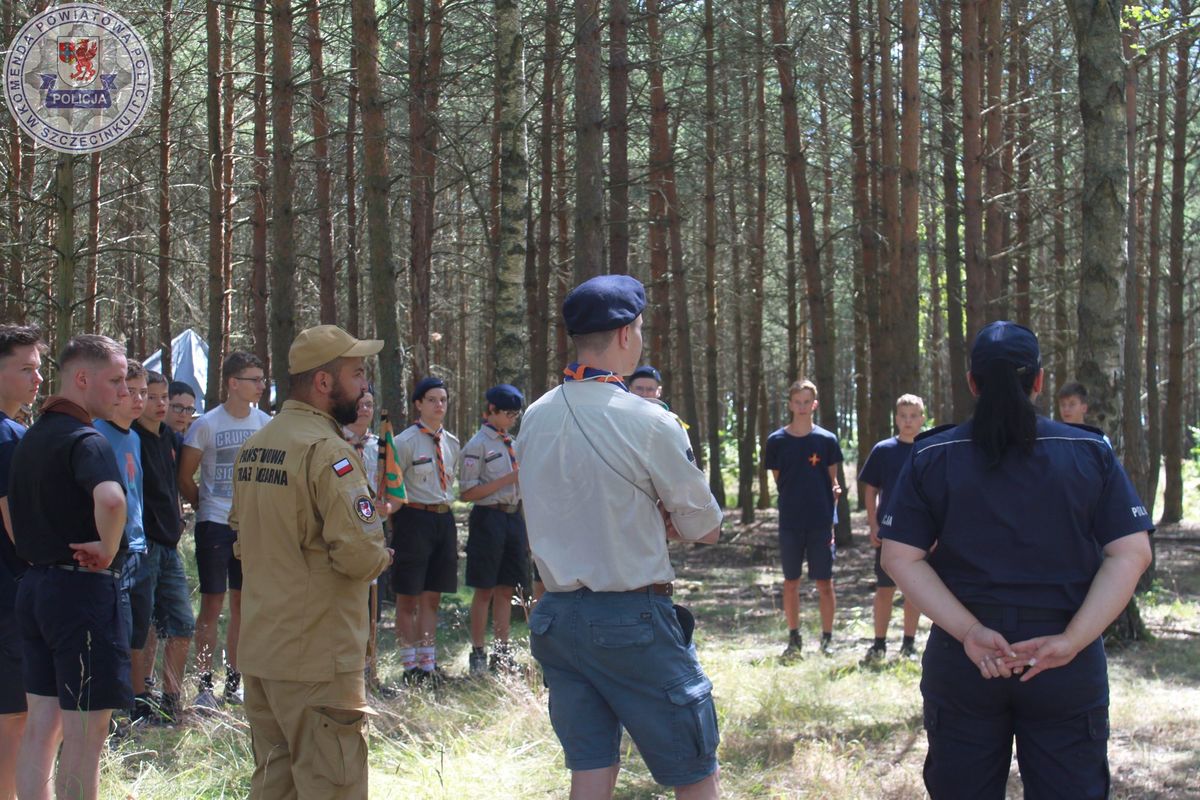 Wraz z nadejściem kolejnego tygodnia na terenie powiatu szczecineckiego pojawiły się kolejne obozy a w nich harcerki i harcerze zuchy oraz skauci z okolic Poznania, Jeleniej Góry, Warszawy a nawet Francji. Policjanci wspólnie ze strażakami z Komendy Powiatowej Państwowej Straży Pożarnej w Szczecinku i pracownikiem zarządzania kryzysowego ze Starostwa Powiatowego odwiedzili obózy w okolicach jeziora Strzeszyn.