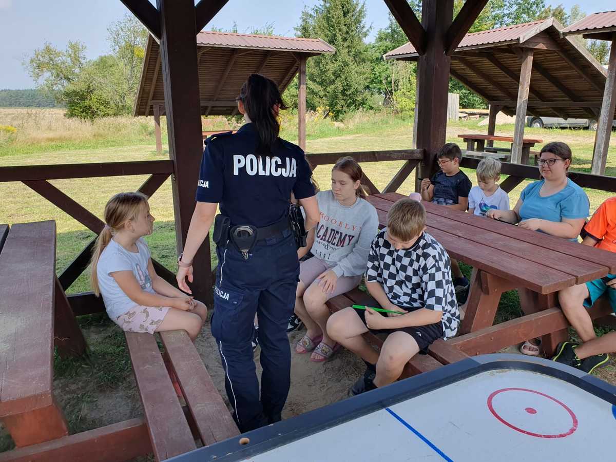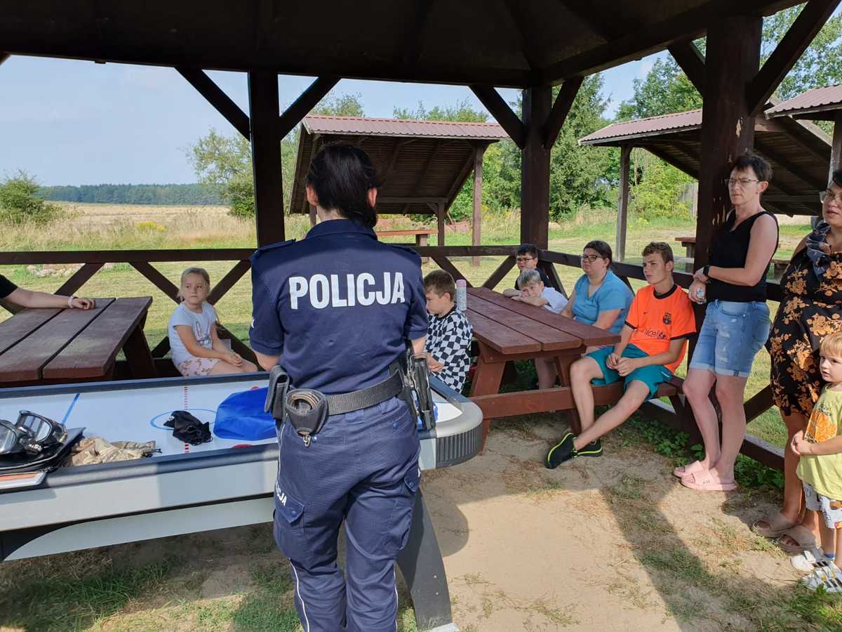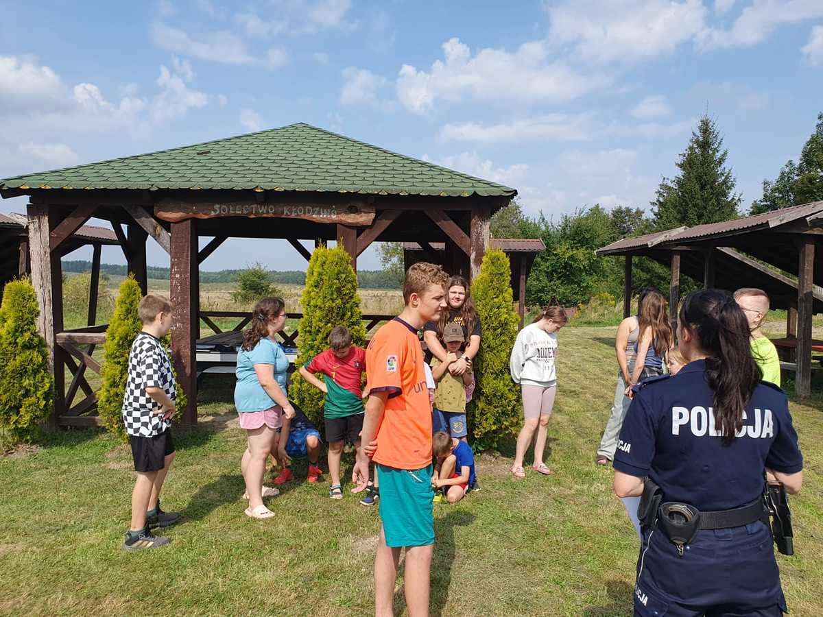 Policjantka z Komendy Powiatowej Policji w Szczecinku wspólnie z promotorem zdrowia z Państwowej Stacji Sanitarno-Epidemiologicznej na zakończenie wakacji odwiedziły mieszkańców Kłodzina