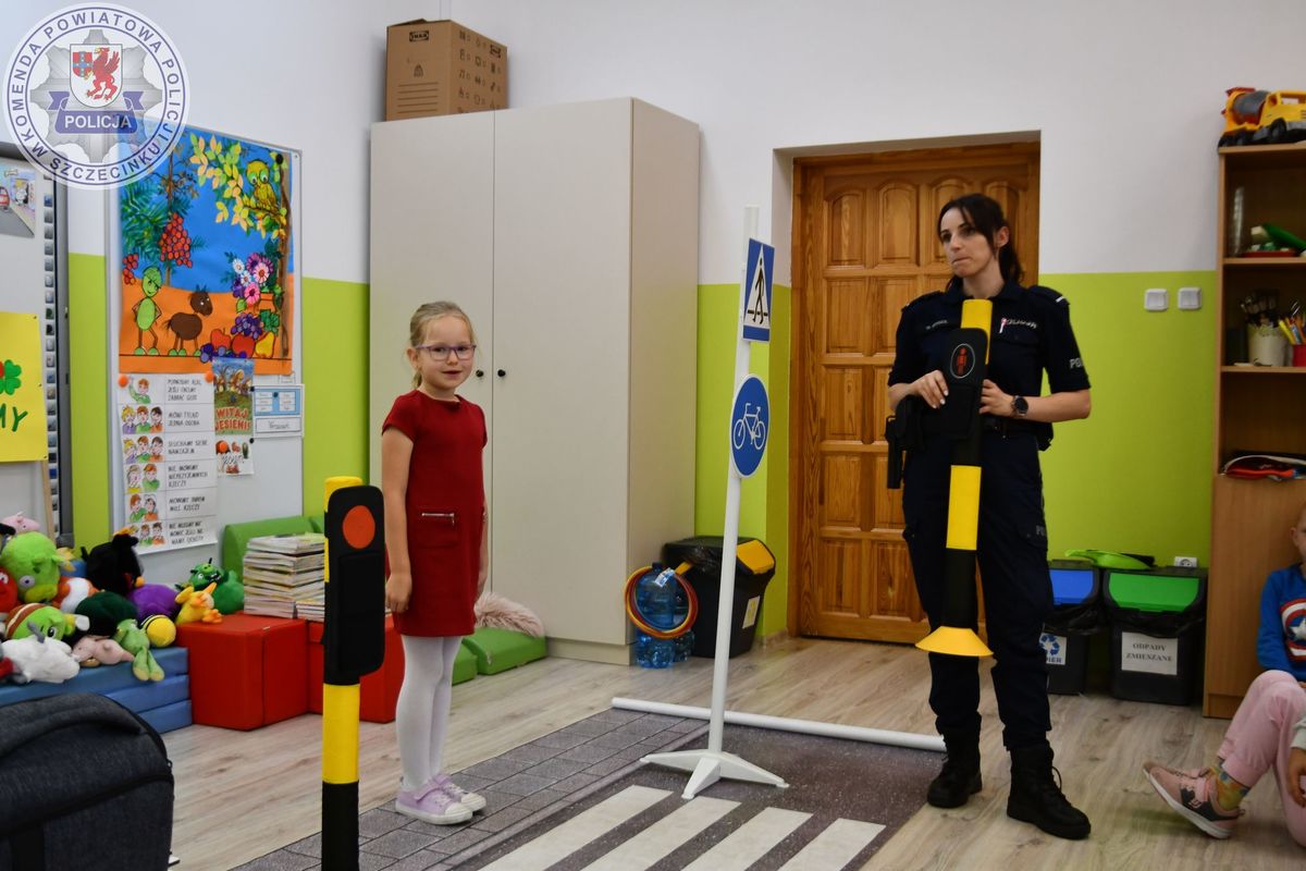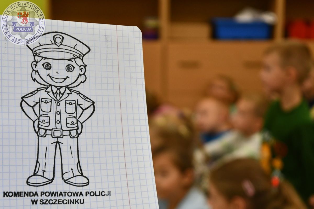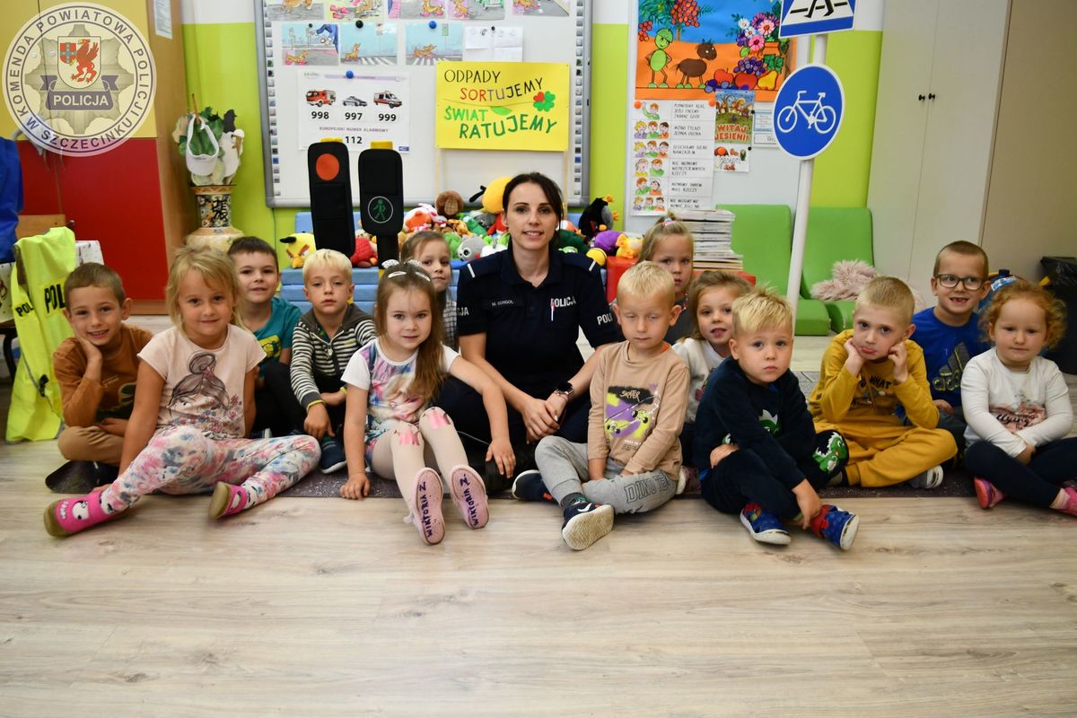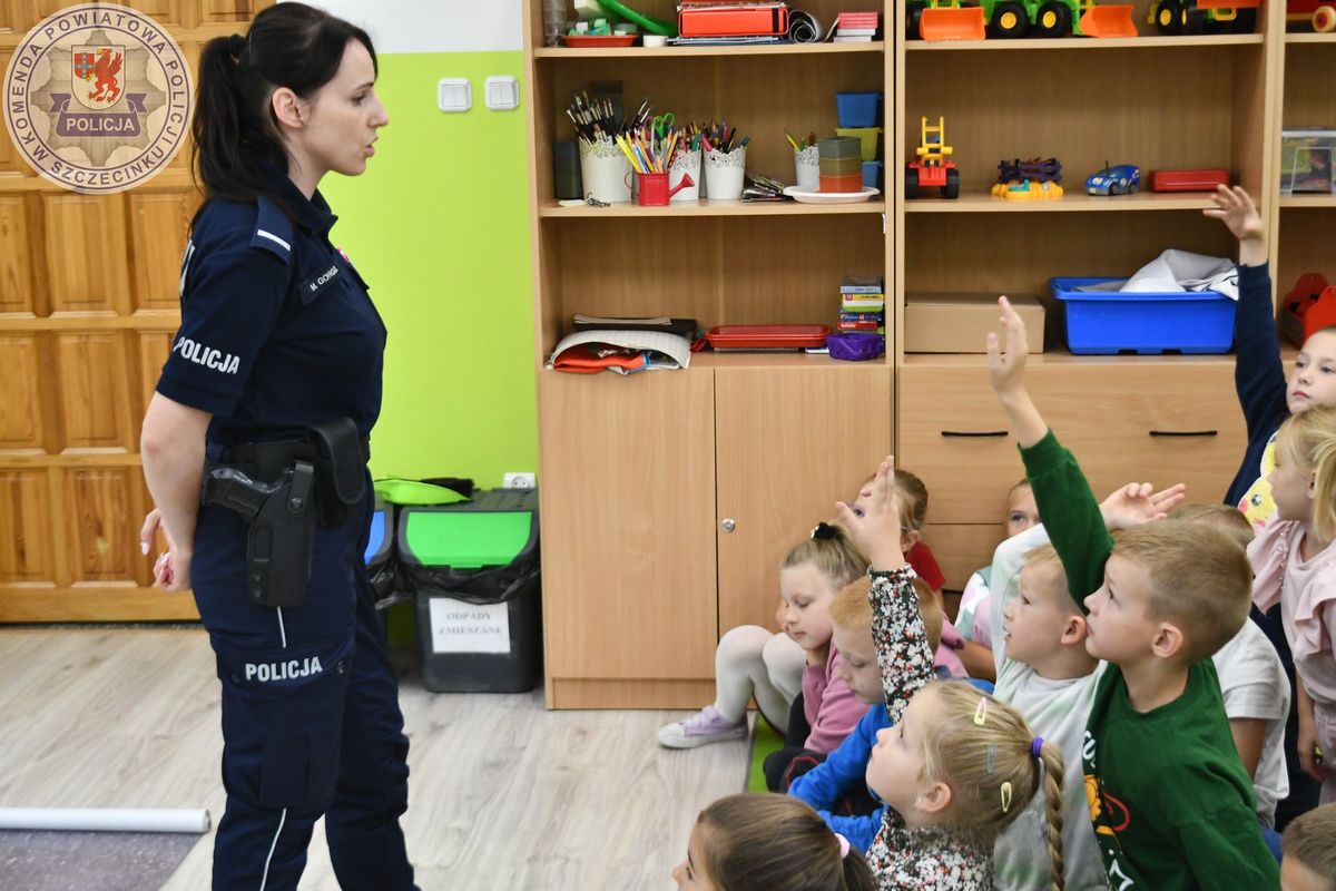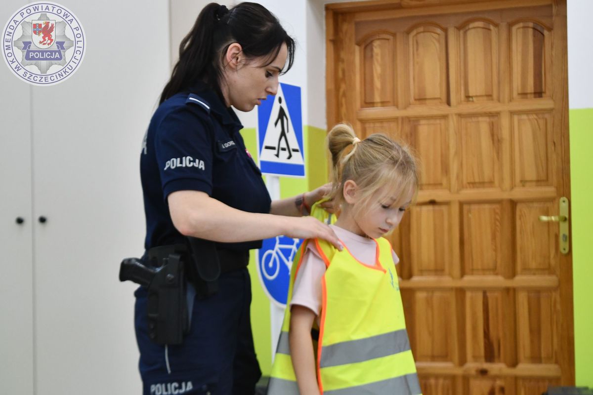 Policjantki ze szczecineckiej komendy w ramach prowadzonej akcji na terenie województwa zachodniopomorskiego „Bezpieczna droga do szkoły” spotkały się z uczniami Szkoły Podstawowej w Iwinie oraz ich młodszymi kolegami i koleżankami z przedszkola.