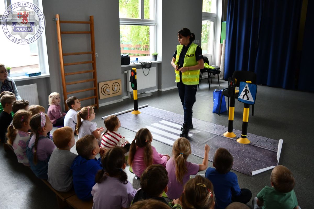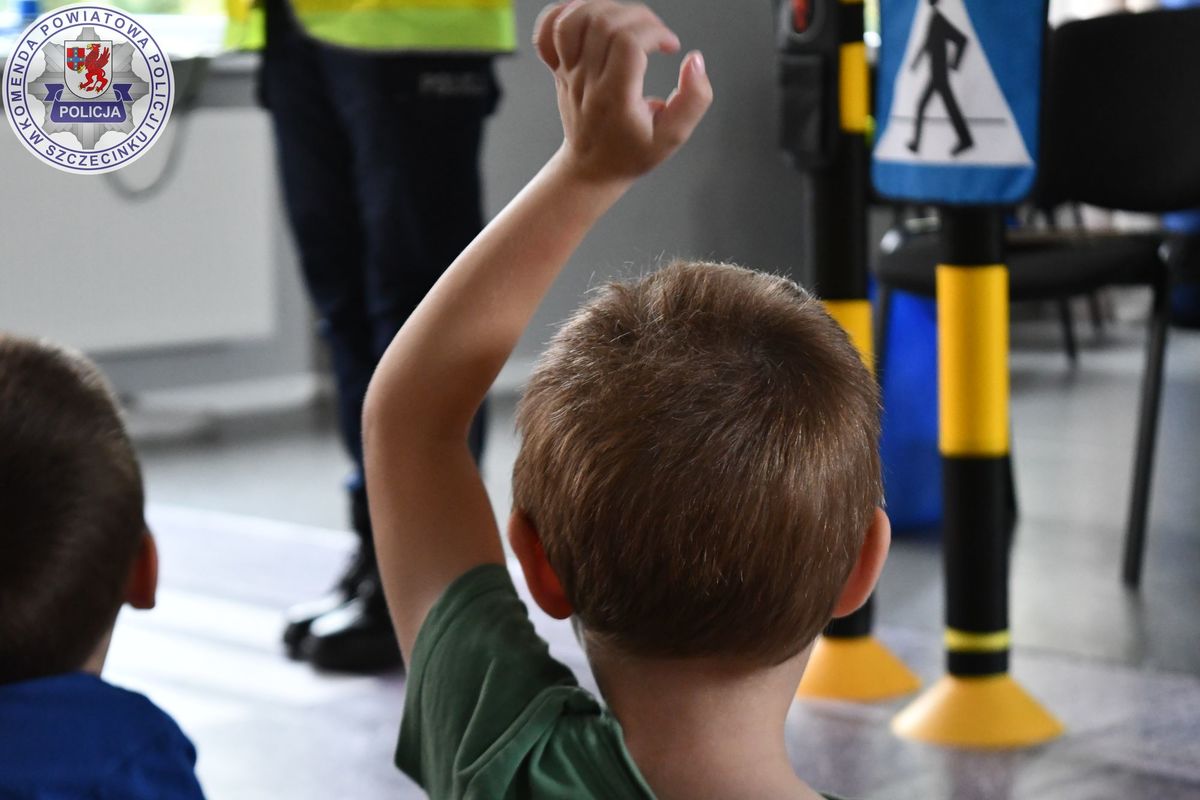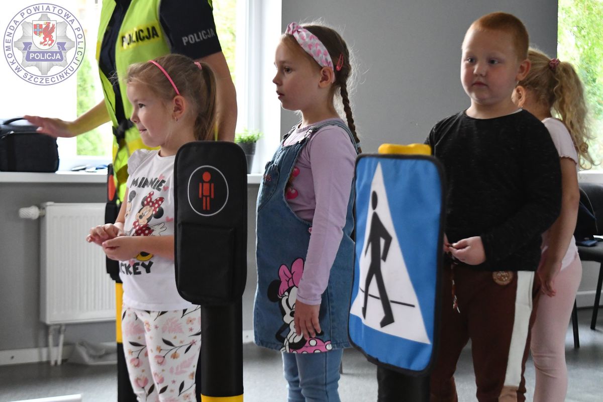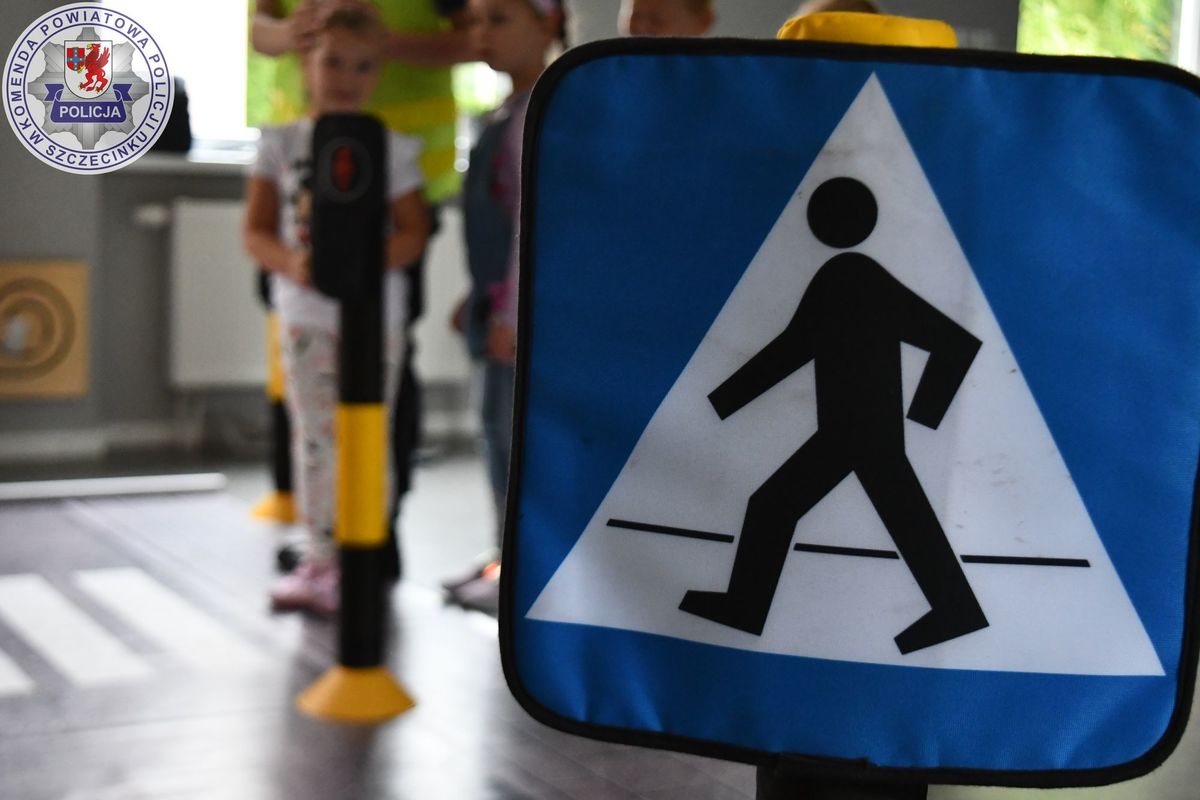 Przedszkolaki z Niepublicznego Przedszkola "U cioci Gosi" w Szczecinku wykazały się znajomością numeru alarmowego 112, i dowiedziały się jakie informacje należy przekazać podczas zgłoszenia. Dzięki wykorzystaniu elementów drogi dzieci pod czujnym okiem policjanctki doskonaliły umiejętność poruszania się po drodze.