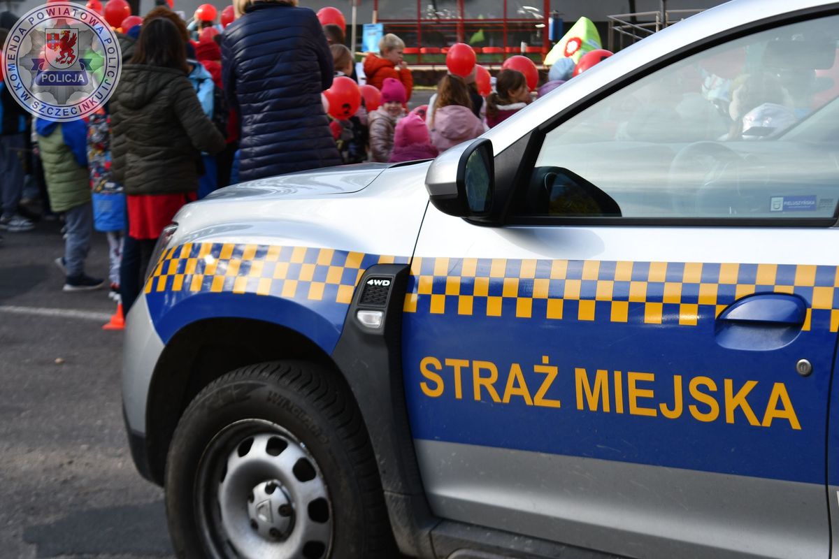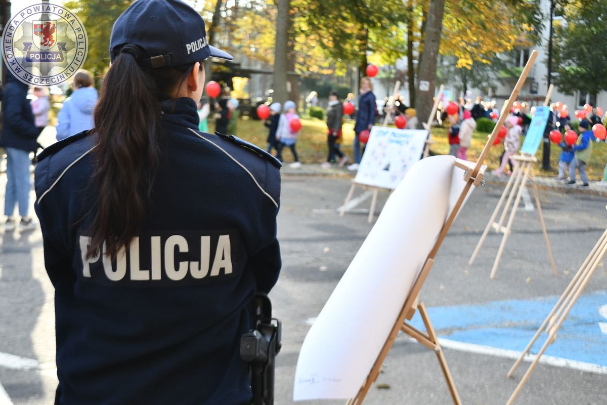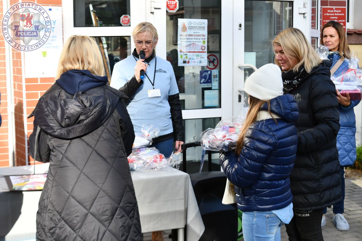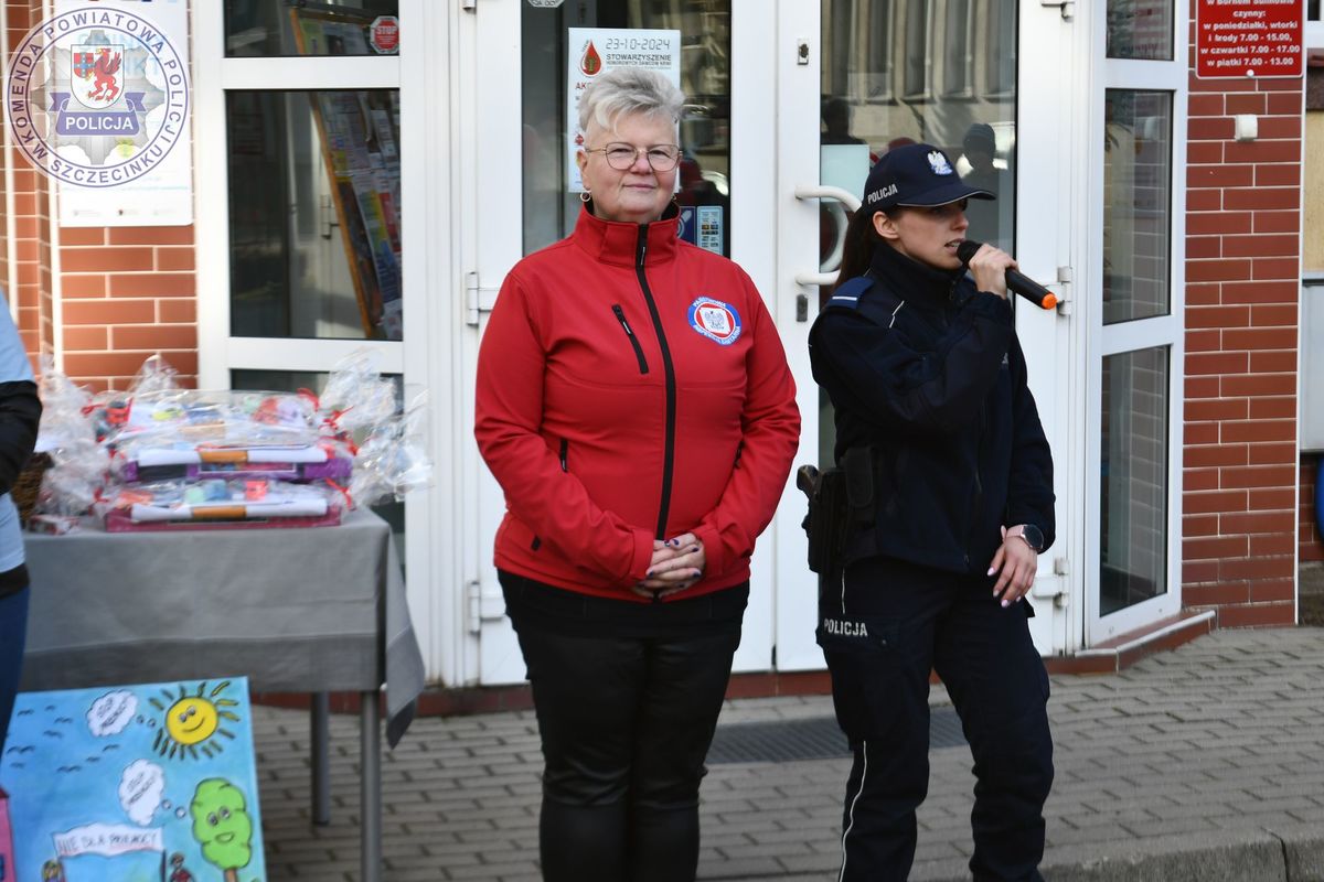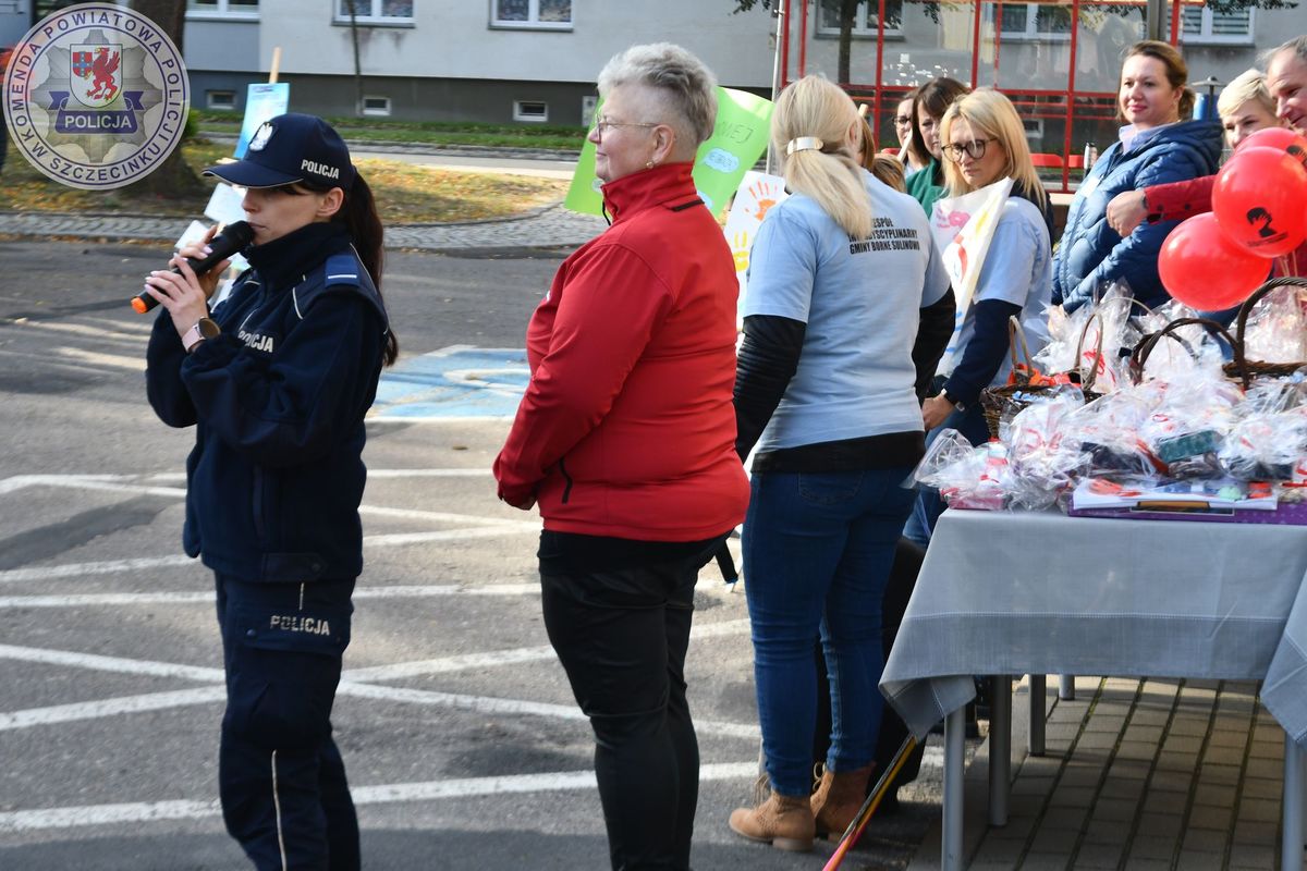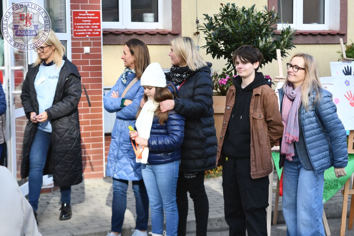 STOP PRZEMOCY happening pod borneńskim urzędem miejskim z udziałem policjantek ze szczecineckiej jednostki