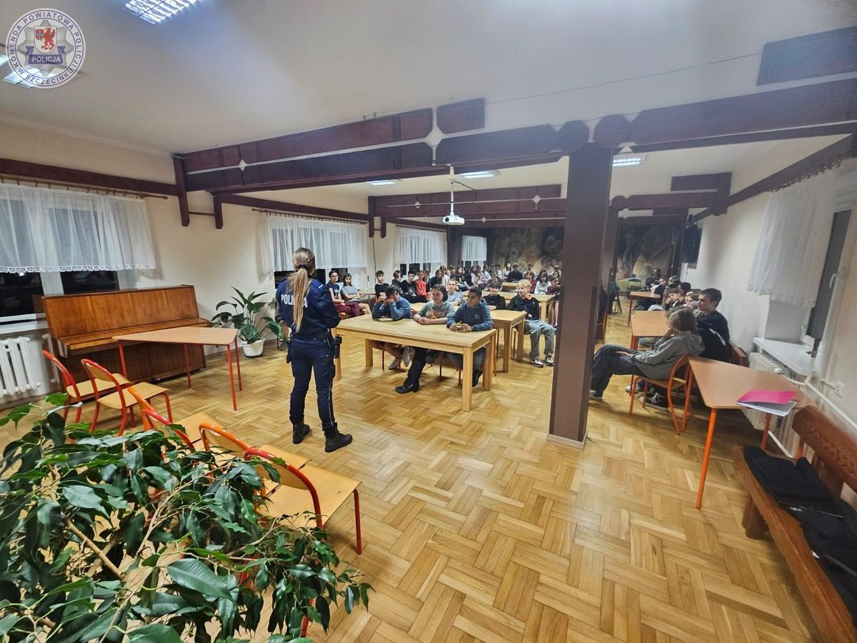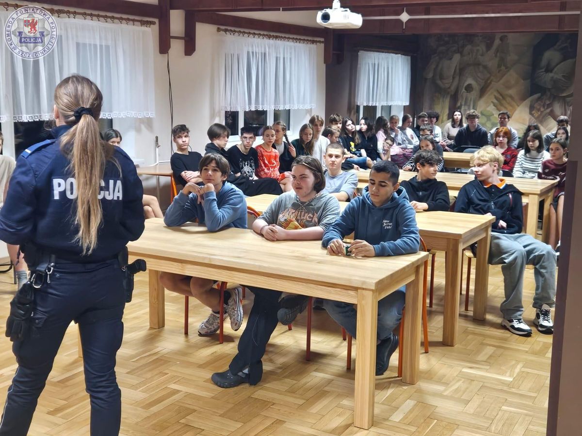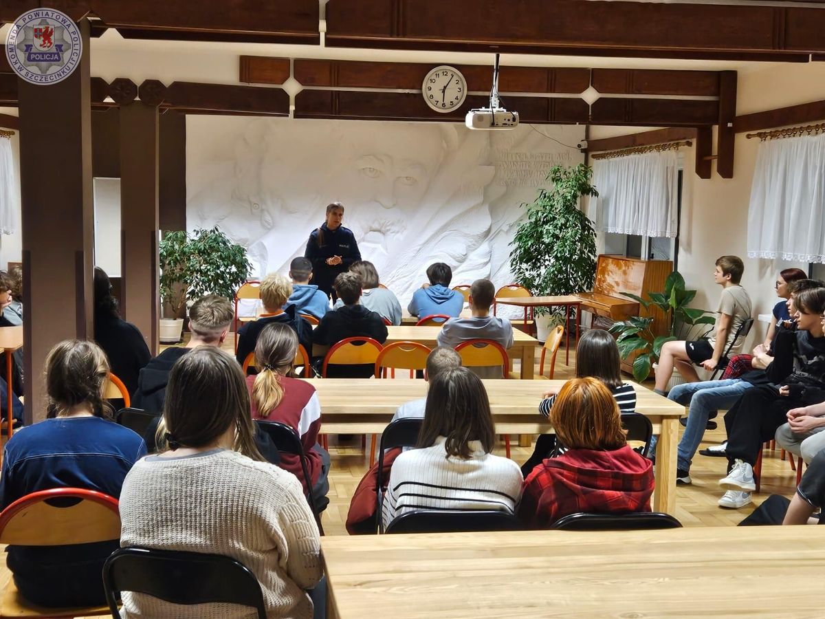 Dzielnicowa z białoborskiego posterunku odwiedziła internat I LO im. T. Szewczenki w Białym Borze. Podczas spotkania z uczniami policjantka omówiła współczesne zagrożenia, z którymi może mierzyć się współczesna młodzież. Ważnym aspektem prowadzonych rozmów było również bezpieczeństwo w sieci, które przekłada się na różne płaszczyzny życia codziennego.