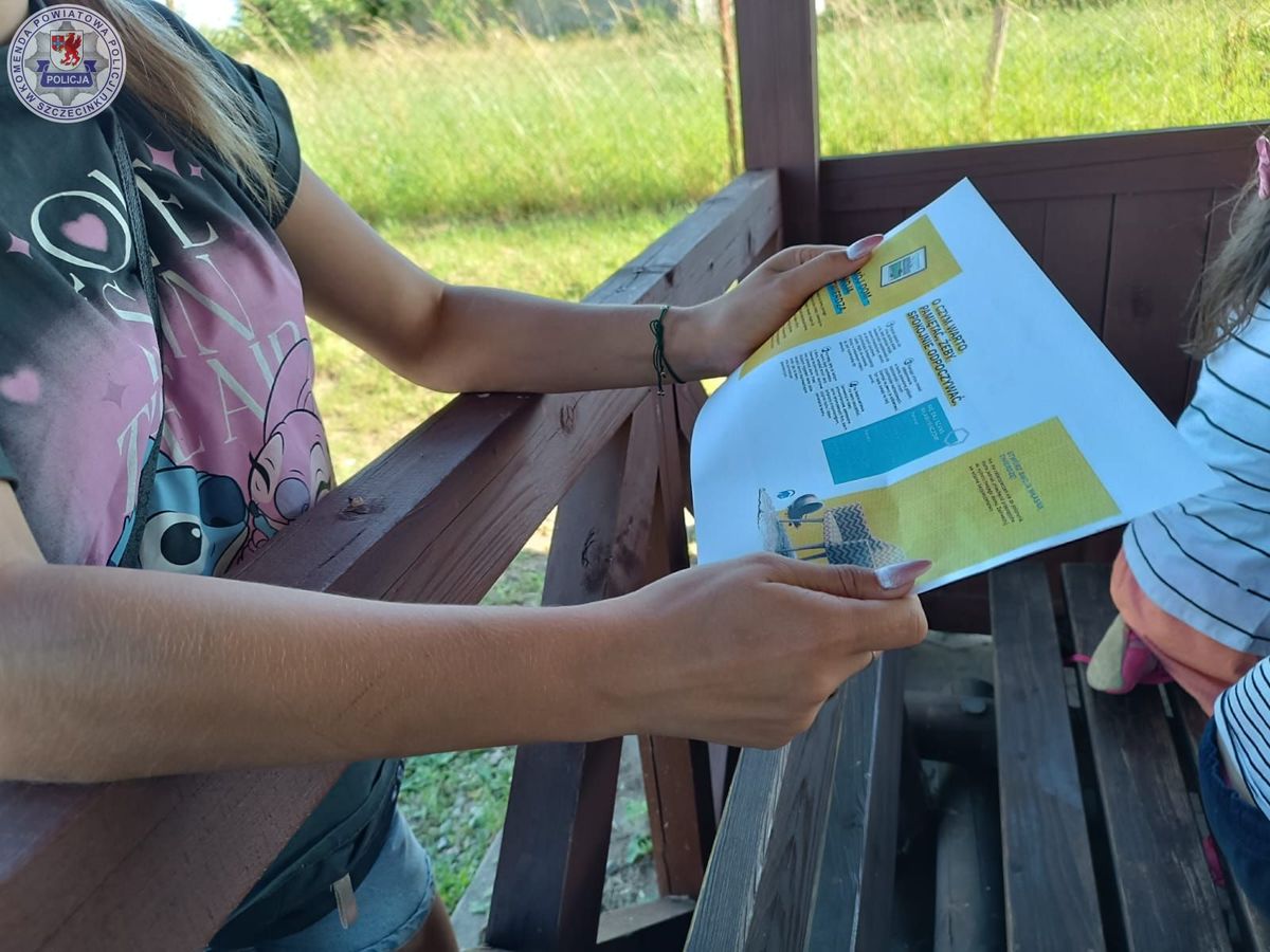 Spotkanie z dziećmi, choć i dorośli przysłuchiwali się z zaciekawieniem policjantka rozpoczęła od pogadanki na temat bezpieczeństwa podczas tegorocznych wakacji. Z uwagi na sprzyjającą słoneczną pogodę i w myśl założeń kampanii informacyjnek pn.: ”Kręci mnie bezpieczeństwo w lecie” policjantka zwróciła uwagę na niebezpieczne zachowania nie tylko w pobliżu wody ale również na niej, kiedy korzystamy z różnego rodzaju jednostek pływających. Podczas rozmów pojawił się również wątek alkoholu, a mundurowa szybko wyjaśniła nie tylko najmłodszym dlaczego tak niebzpieczne jest połączenie wody z alkoholem. W formie apelu policjantka zwróciła się do rodziców przypominając o obowiązku opieki nad osobą małoletnią, zwłaszcza nad wodą.