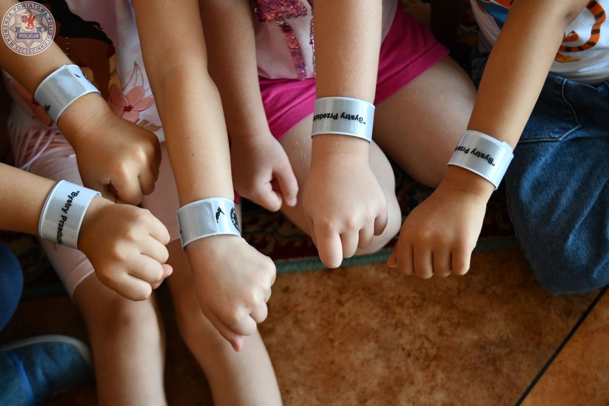 Na zakończenie dzieci otzrymału elementy odblaskowe pochodzące z programu prewencyjnego „Bystry Przedszkolak”. Zadanie to jest współfinansowane ze środków samorządu województwa zachodniopomorskiego.