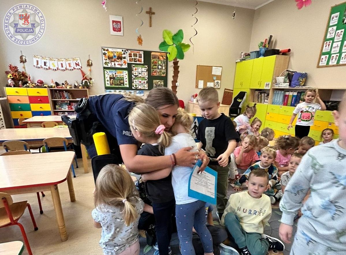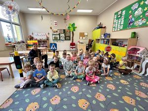 Spotkanie było nie tylko okazją do przypomnienia sobie zasad chociażby bezpiecznego poruszania się w pobliżu jezdni i na przejściu dla pieszych, ale przede wszystkim okazją do obdarowania się nieskończonymi pokładami sympatii. Podczas spotkania policjantka przypomniała dlaczego dzieci nie powinny ufać nieznajomym osobom i oddalać się z kimkolwiek bez wiedzy rodziców. W ten sposób starszaki dowiedziały się jakie konsekwencje mogą nieść za sobą takie zachowania. Podczas spotkania zaproszony gość opowiadał o codziennej służbie i sytuacjach w jakich należy zwrócić się do policjanta o pomoc, dzwoniąc np. na numer alarmowy.
