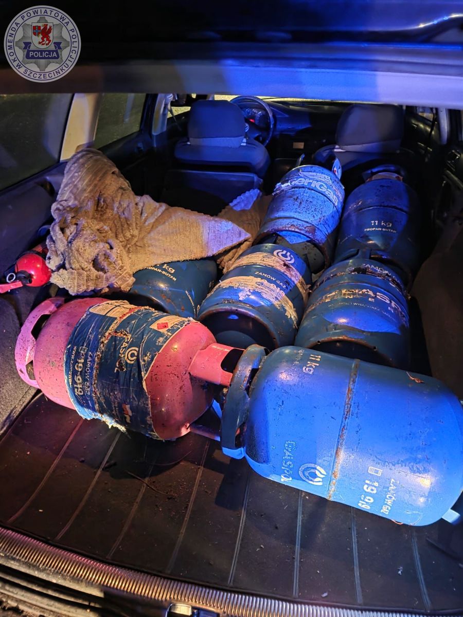 Policjanci z Komisariatu Policji w Bornem Sulinowie zostali poinformowani o kradzieży butli gazowych umieszczonych w metalowej klatce w jednej z miejscowości na terenie gminy Borne Sulinowo. Sprawca pokonał zabezpieczenia, a następnie ukradł 16 butli z gazem propan butan na łączną kwotę 4720 zł. Dobre rozpoznanie i zaangażowanie funkcjonariuszy pozwoliło na zatrzymanie sprawcy w niespełna 6 godzin od zdarzenia. Mężczyzna został zatrzymany podczas kontroli drogowej na terenie Bornego Sulinowa. Mundurowi w pojeździe ujawnili 8 sztuk butli, które jak oświadczył kierujący należały do siedzącego w pojeździe mężczyzny któremu pomagał je przewieźć.