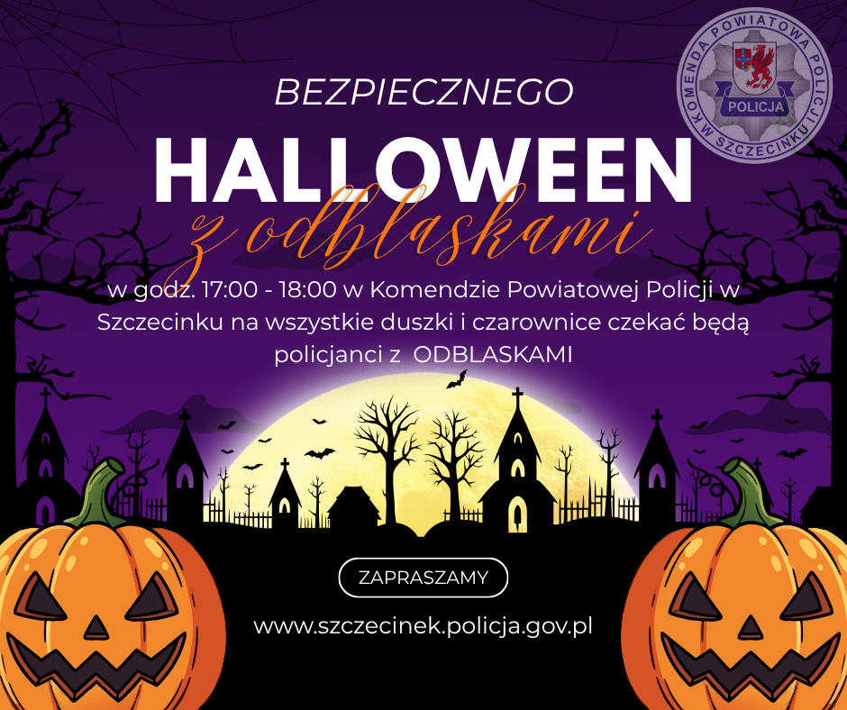 Dlatego już dziś wszystkie dzieci, które wyruszą tego dnia w poszukiwaniu cukierków zapraszamy do Komendy Powiatowej Policji w Szczecinku przy ul. Polnej 25, gdzie będą oczekiwać na Was policjanci, którzy wyposażą Was w ważny element waszego bezpieczeństwa - ODBLASKI