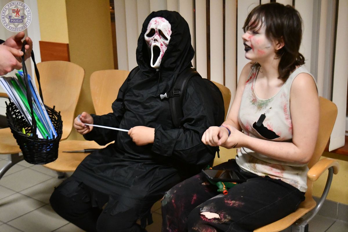 Dlatego mając to na uwadze, policjanci z Komendy Powiatowej Policji w Szczecinku zaprosili najmłodszych mieszkańców Szczecinka i ich rodziców do wspólnej zabawy. W godz 17:00-18:00, każdy zombiak, duszek czy też wróż mógł liczyć na odblask od policjantów.