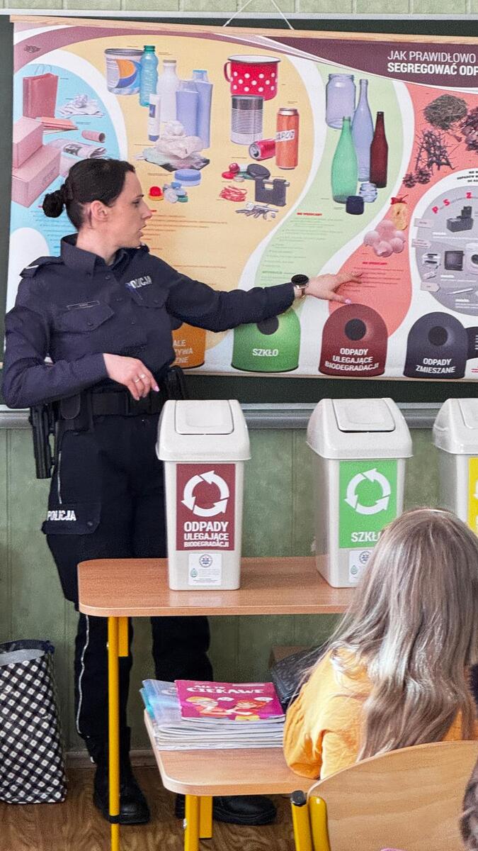 Głównym tematem zajęć była postawa Eko-Obywatela. Funkcjonariuszki w interaktywny sposób przybliżyły dzieciom zasady dbania o nasze wspólne otoczenie, kładąc szczególny nacisk na :